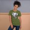 Diseño de elefantes en el pecho con transición de vectorial a realismo.